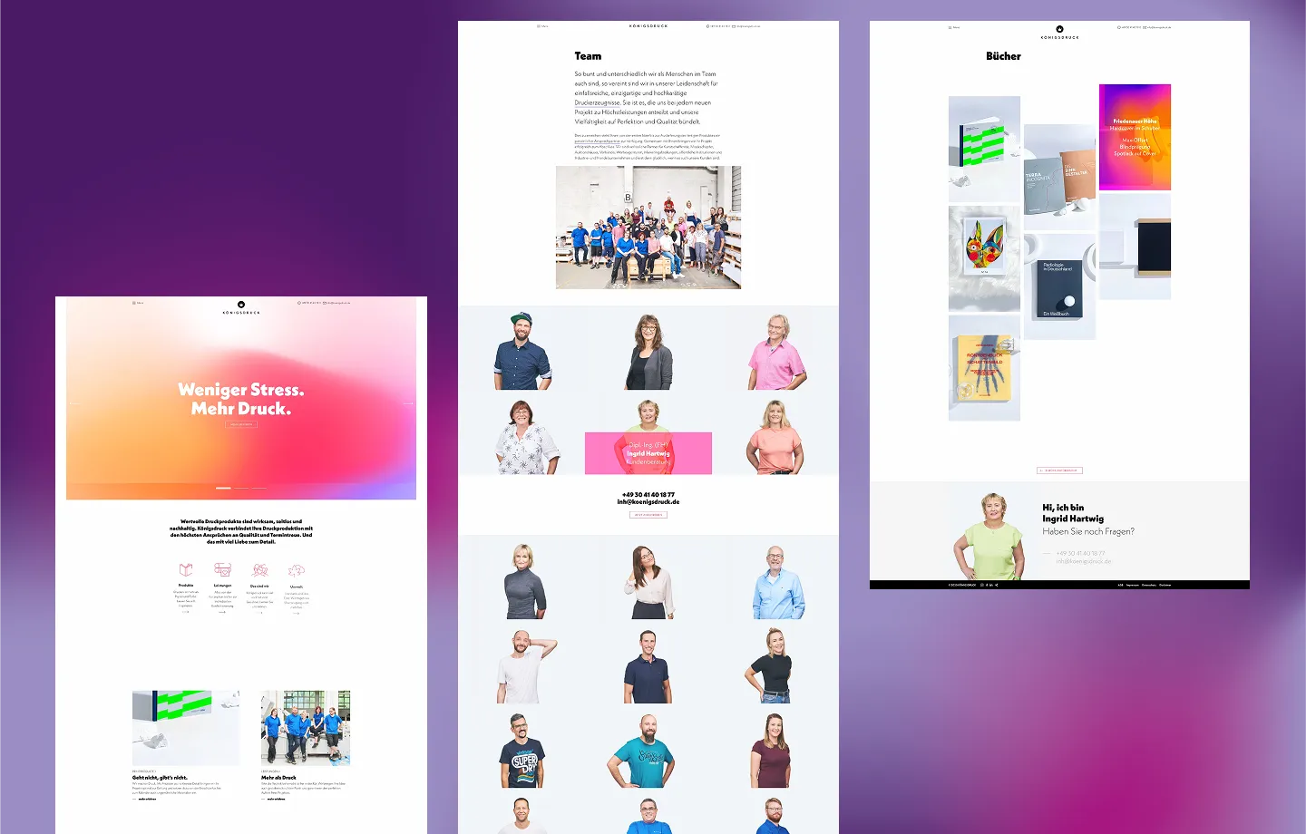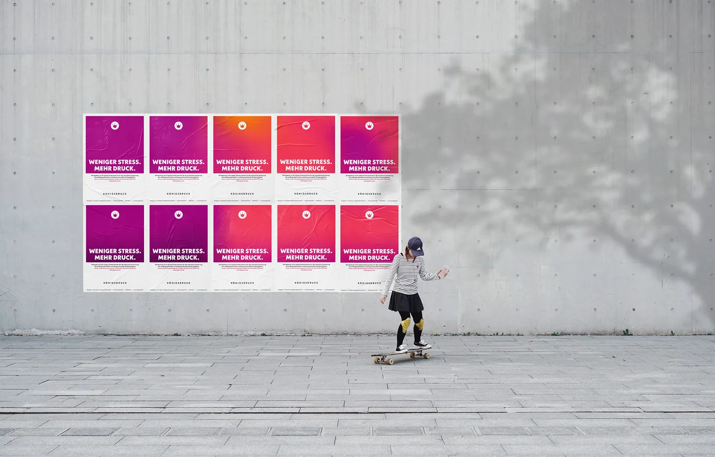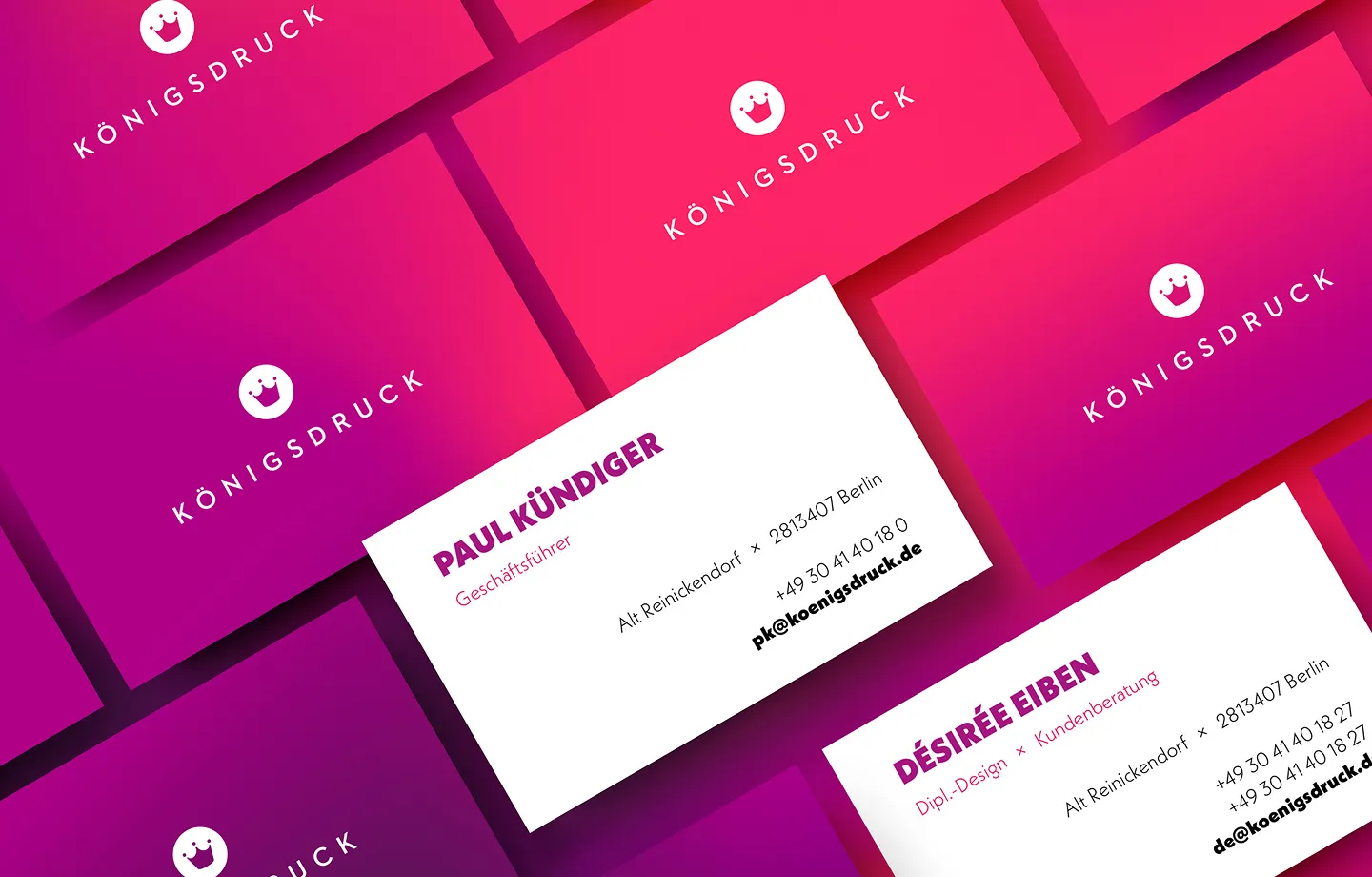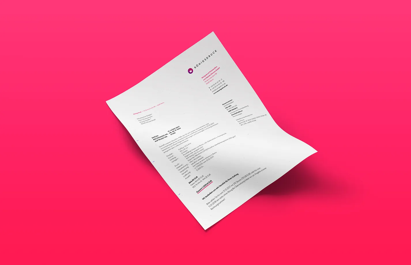Königsdruck stands for high-quality printed products with their own distinctive style. During the brand refresh, I developed a clear positioning and tone of voice using wordplay from the world of printing. The design strengthens the brand and employer branding, while striking colours convey energy and ambition.