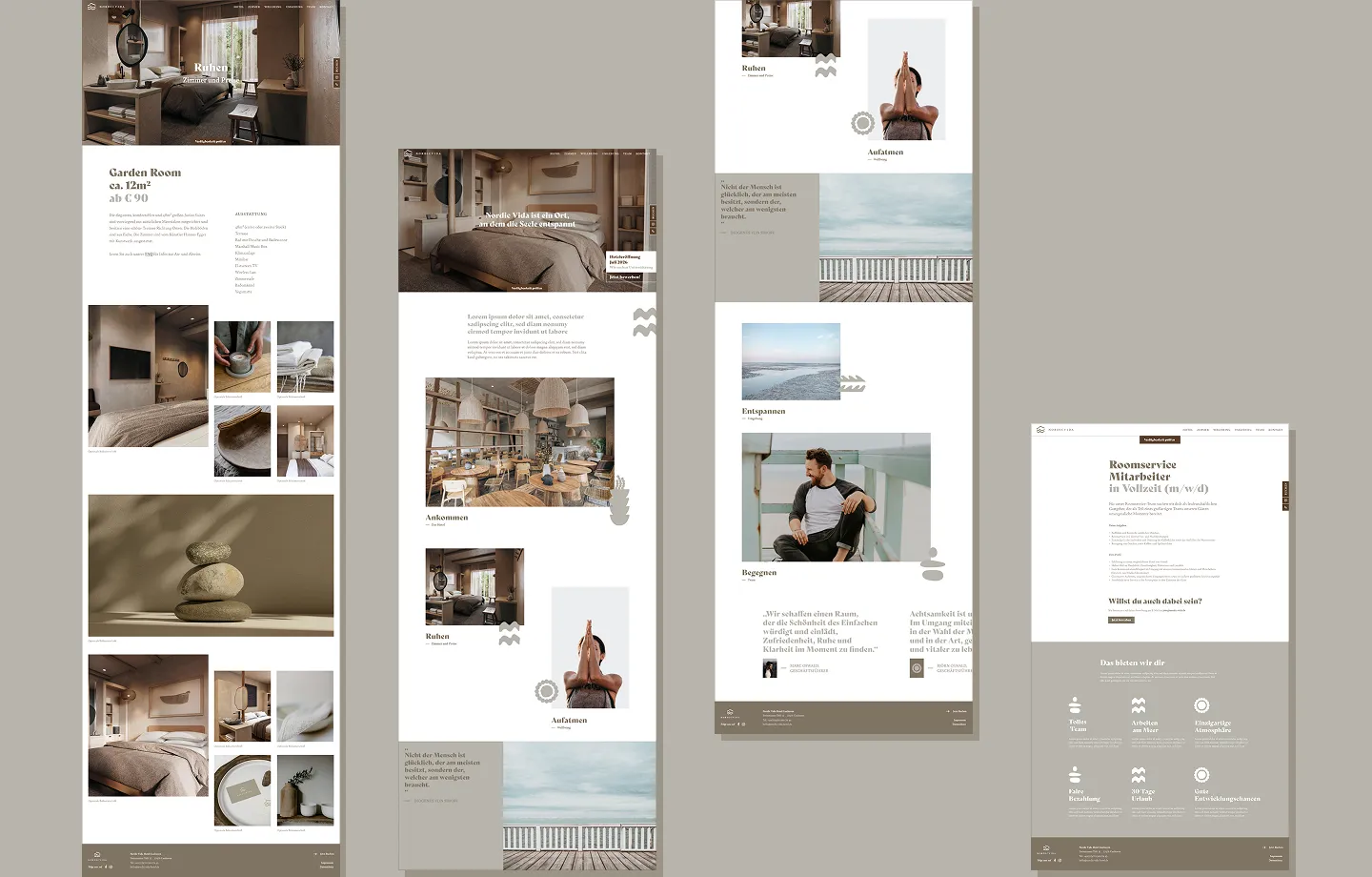 The Nordic Voda Hotel in Cuxhaven follows the Wabi Sabi style and focuses on tranquillity, naturalness and minimalism. I developed the corporate design, provided conceptual support for the hotel furnishings and advised on interior design. In addition, I created a clear screen design.