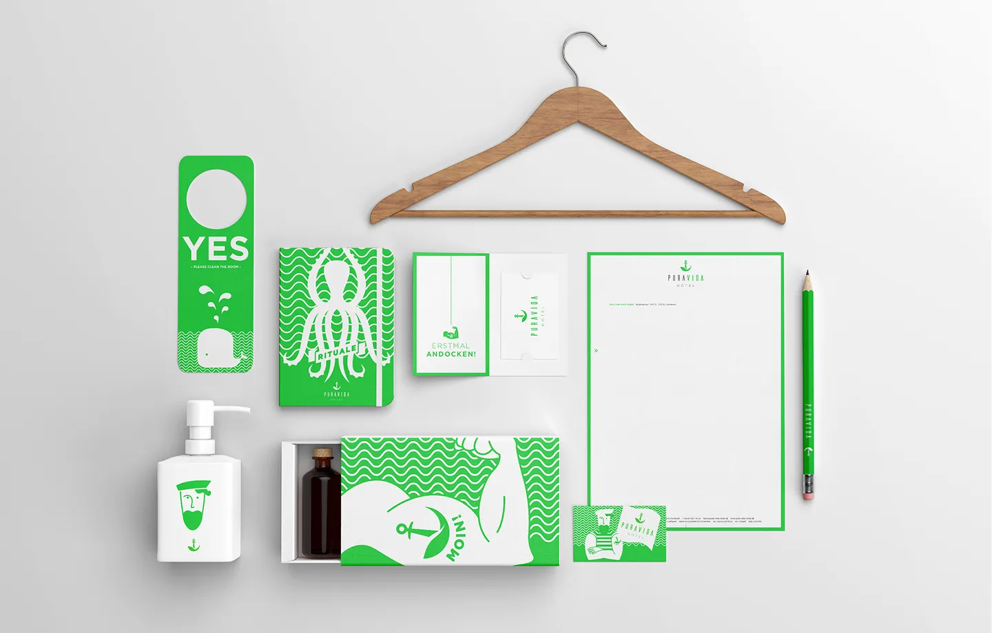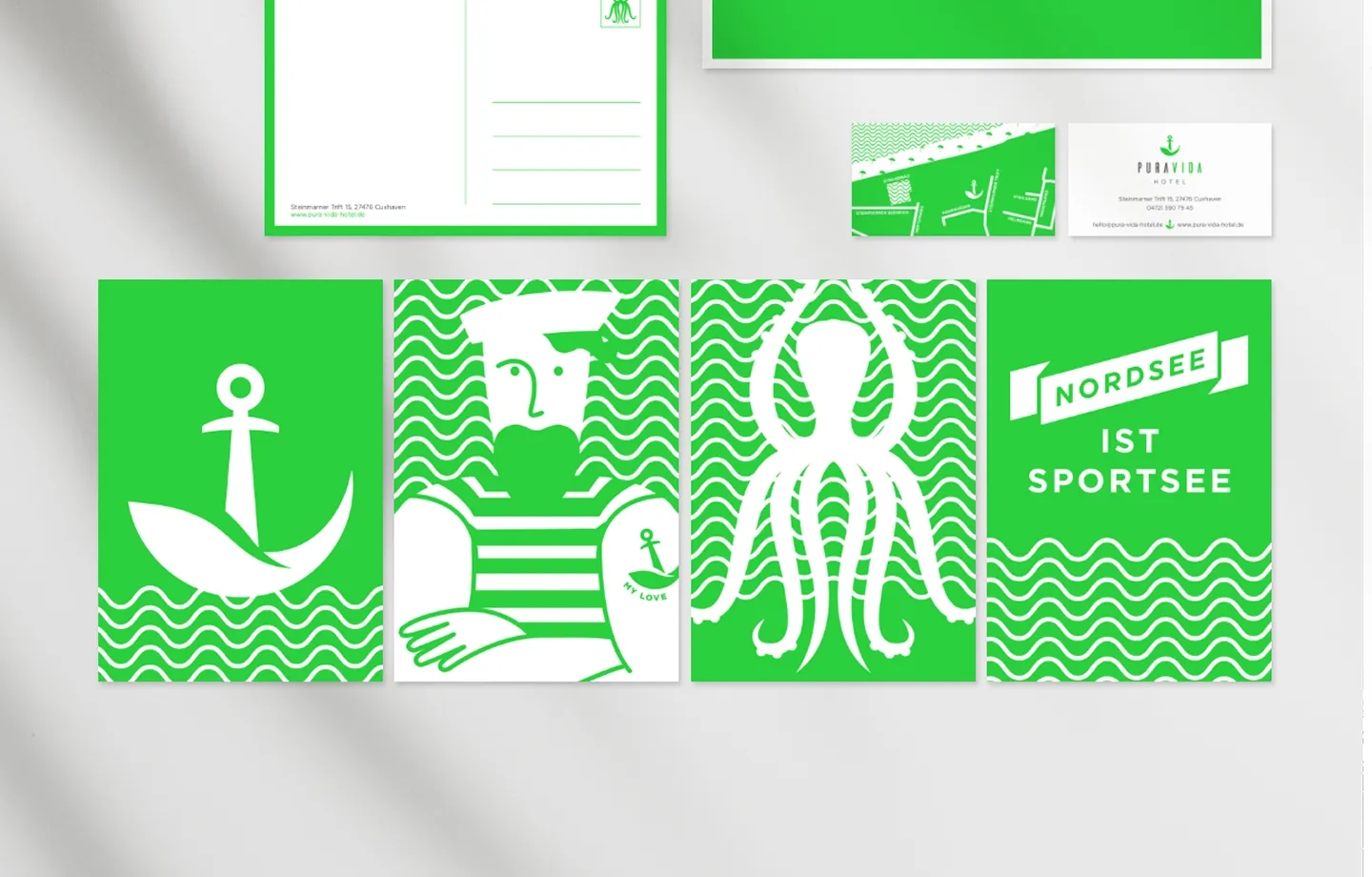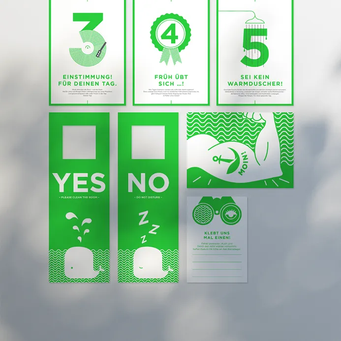 The Pura Vida Hotel in Cuxhaven combines health, sport and relaxation by the sea. I developed the corporate design, designed the signage system and conceived the imagery for the rooms. The result is a clear image that reflects the focus of the hotel.